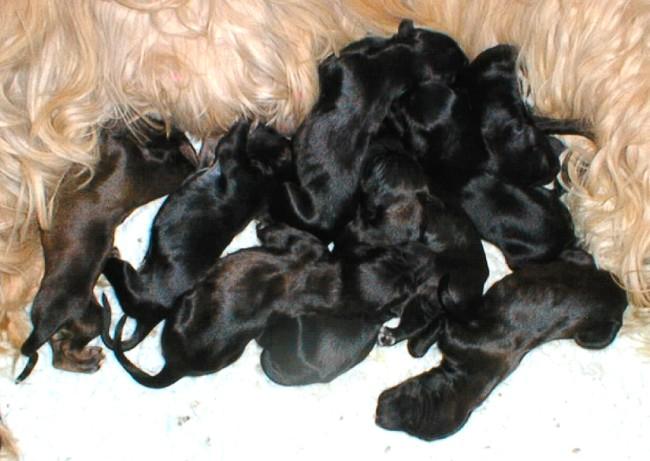 geboren am 30 Mai 2003 zwei rot-brindle Rüden zwei black brindle Rüde eine rot-brindle Hündin zwei rote Hündinnen eine schwarze Hündin |